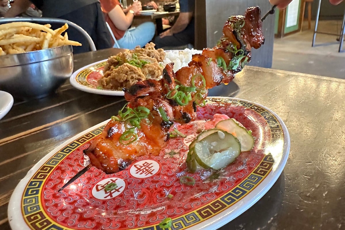 The skewers are newer and include barbecue pork, fish balls, quail eggs, or grilled tender chicken glazed with kalbi sauce ($5-$14 per skewer). Also of note is the surprisingly light salt-and-vinegar boneless fried chicken with rice and calamansi soy tomatoes ($20).